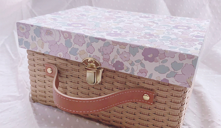 厚紙(カルトン)で組み立てた箱などに、布や紙、リボンなどを貼って作るフランスの伝統工芸です。