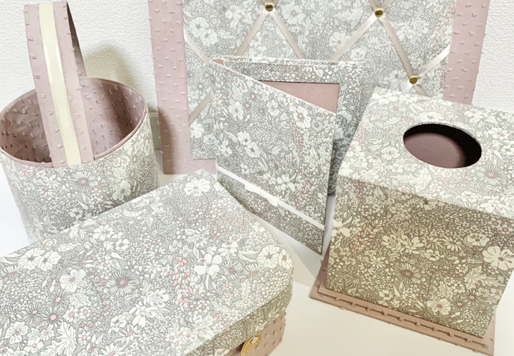 カルトナージュの技術を応用することで、厚紙だけでなく様々な素材を使った作品や既製品のリメイクなど、幅広くハンドメイド作品を作ることができます。