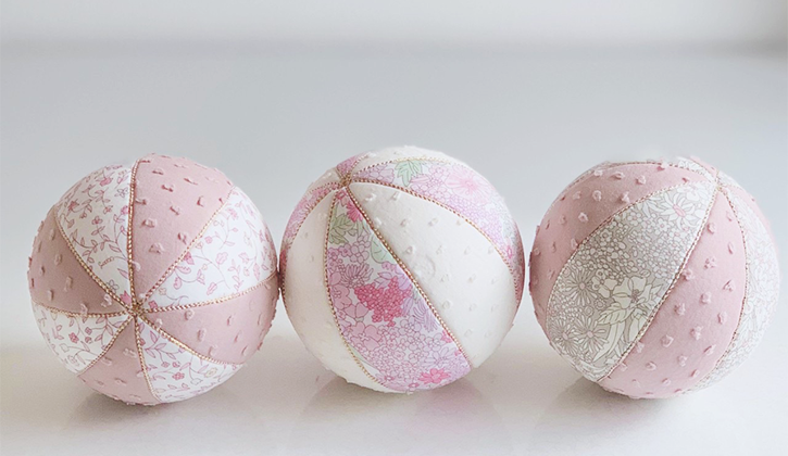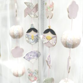 日本の伝統工芸であるこの木目込み人形の技術を用いて、より扱いやすい素材で鞠やアートボード(きめこみボード)などを作っています。